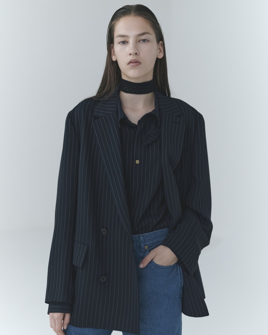 Stripe Double Cloth Button-Tab Pocket Tailored Jacket