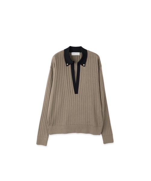 Wide Rib Skipper Collar Knit Pullover