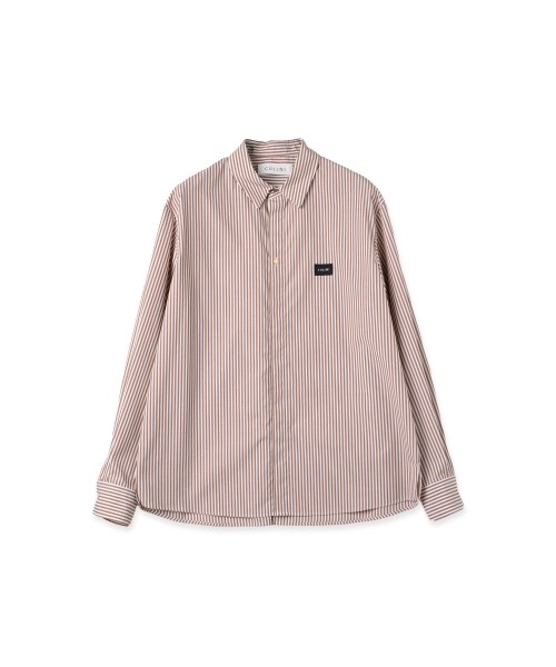 Stripe Double Cloth Chin Tab Long Sleeve Shirt
