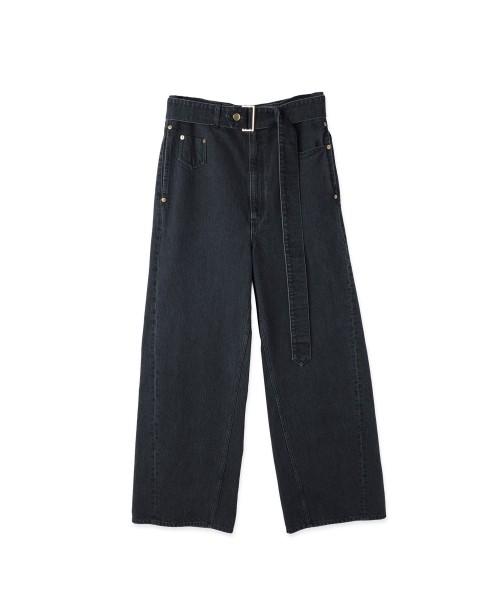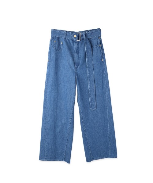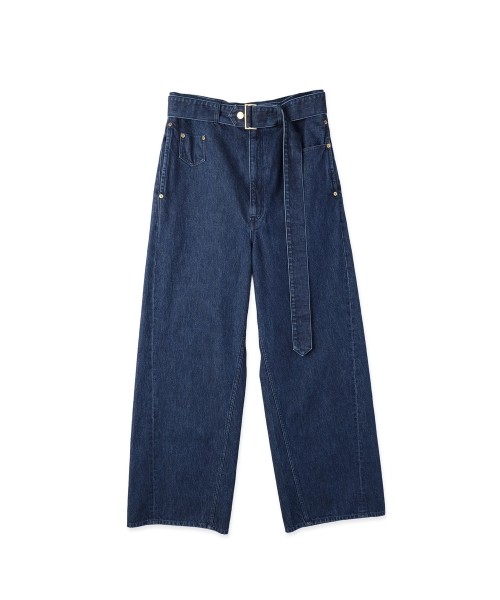 Asymmetrical Pocket Extra Wide Denim Pant with Long Belt